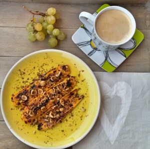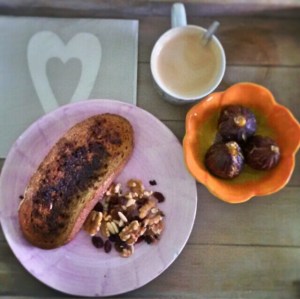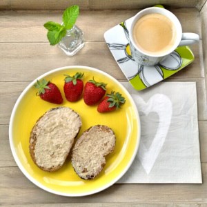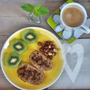Sin embargo, por lo menos a mi, lo que me apetece para desayunar, seguramente debido al componente cultural que comentaba, suelen ser tostadas acompañadas de algo, fruta y/o frutos secos y un café con leche que nunca perdono… Sí, los que me conocen bien saben que antes de tomarme el café por la mañana mejor que no me hablen… XD