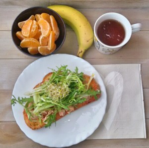 Respecto a las tostadas son siempre de pan integral de centeno y trigo. El tipo de cereal no importa, pero si que es importante que sea integral aunque personalmente tampoco es lo que mas me preocupa, prefiero que el relleno sea saludable a que el pan sea integral y el relleno este cargado de azúcares o carnes procesadas.