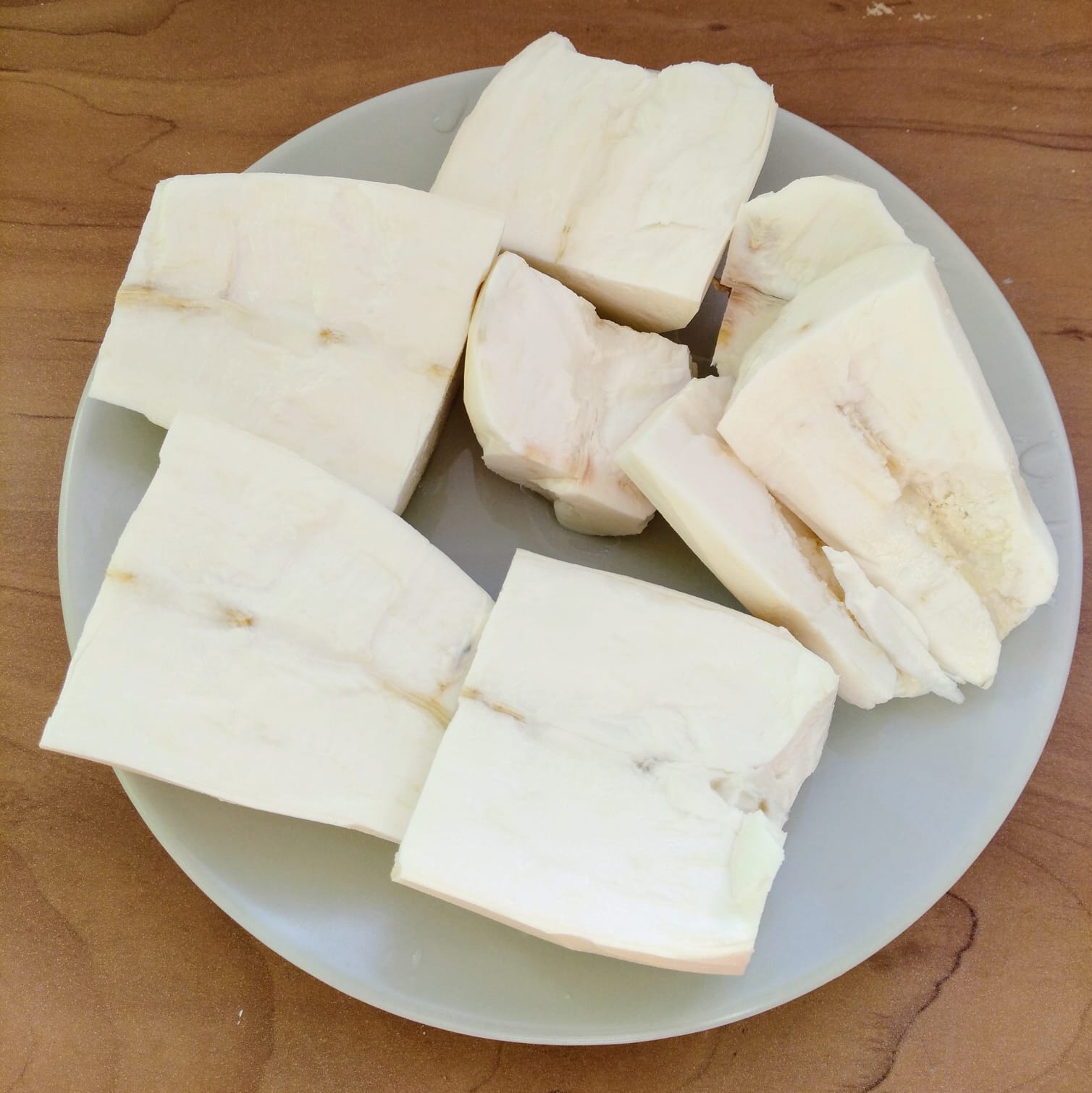 Consejos de un buen amigo colombiano a la hora de comprar la yuca: debe ser dura y blanca por dentro, sin hebras negras. Lo ideal es comprarla en mercados y si puedes pide al vendedor que te la parta por la mitad para así ver si está buena.