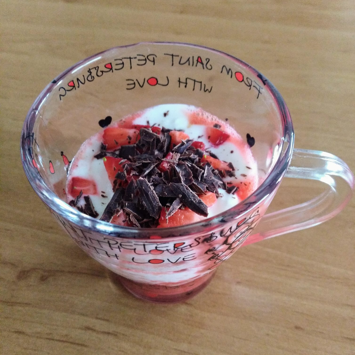 Rellena el vaso añadiendo un yogur natural o queso fresco batido. Y por último corta las fresas restantes en trocitos pequeños y añade por encima.