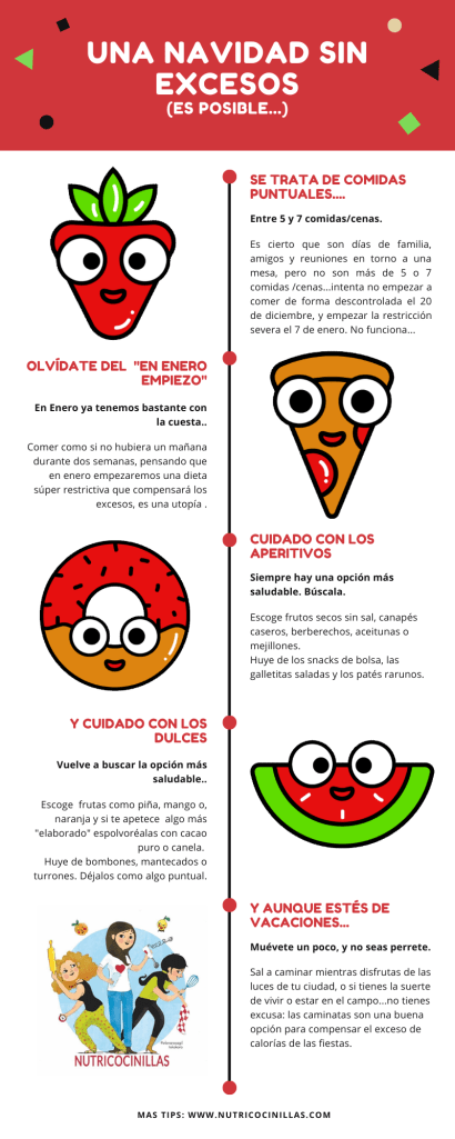 Una Navidad sin excesos (es posible) Publicado el 24 diciembre, 201923 diciembre, 2019 por Belén Gil Belén Gil Os dejamos una infografía con tips para no cometer excesos en estas fiestas navideñas que empiezan…YA 😉 Comparte esto: Haz clic para compartir en X (Se abre en una ventana nueva) X Haz clic para compartir en Facebook (Se abre en una ventana nueva) Facebook Haz clic para compartir en WhatsApp (Se abre en una ventana nueva) WhatsApp Haz clic para compartir en Pinterest (Se abre en una ventana nueva) Pinterest Me gusta Cargando... Relacionado