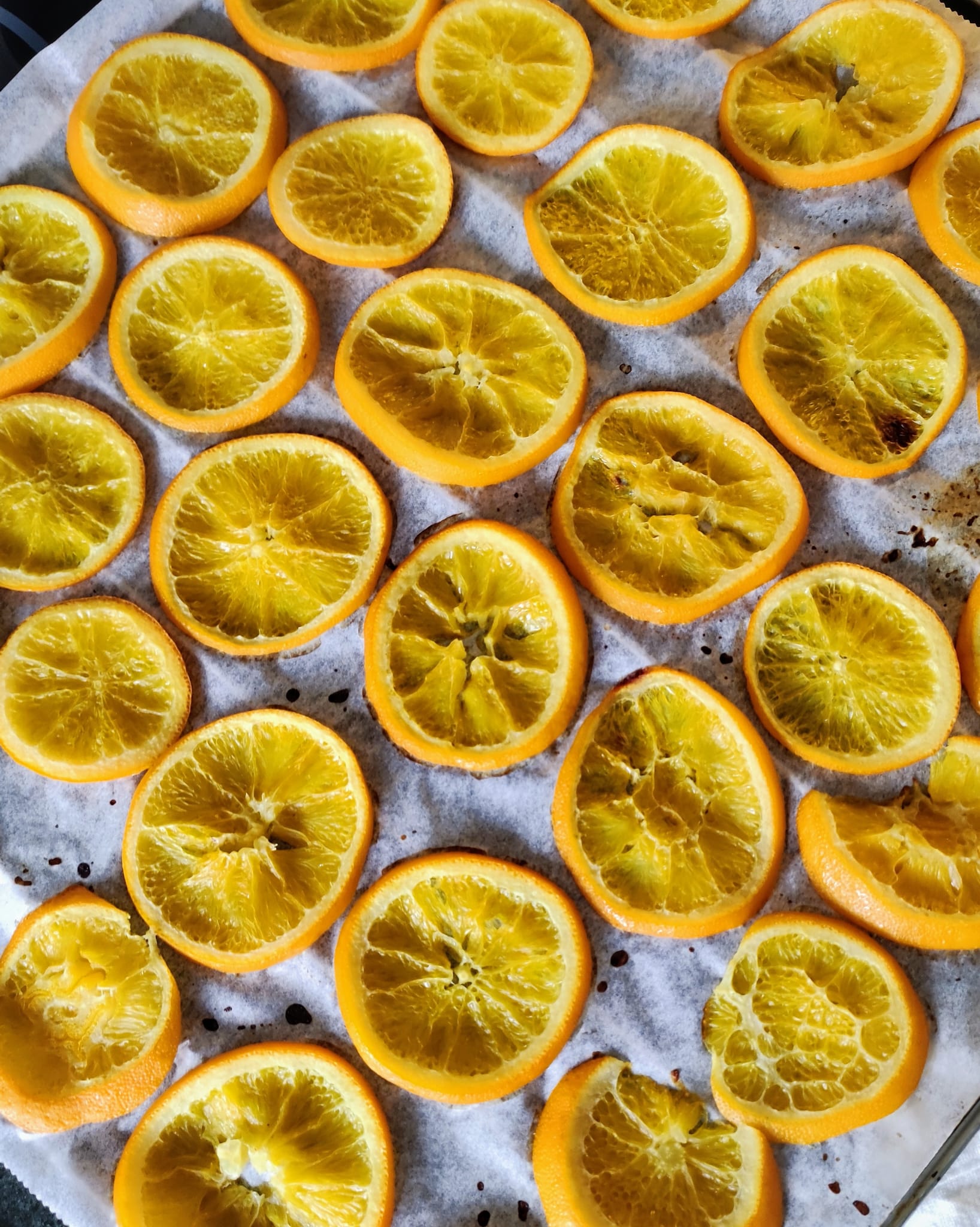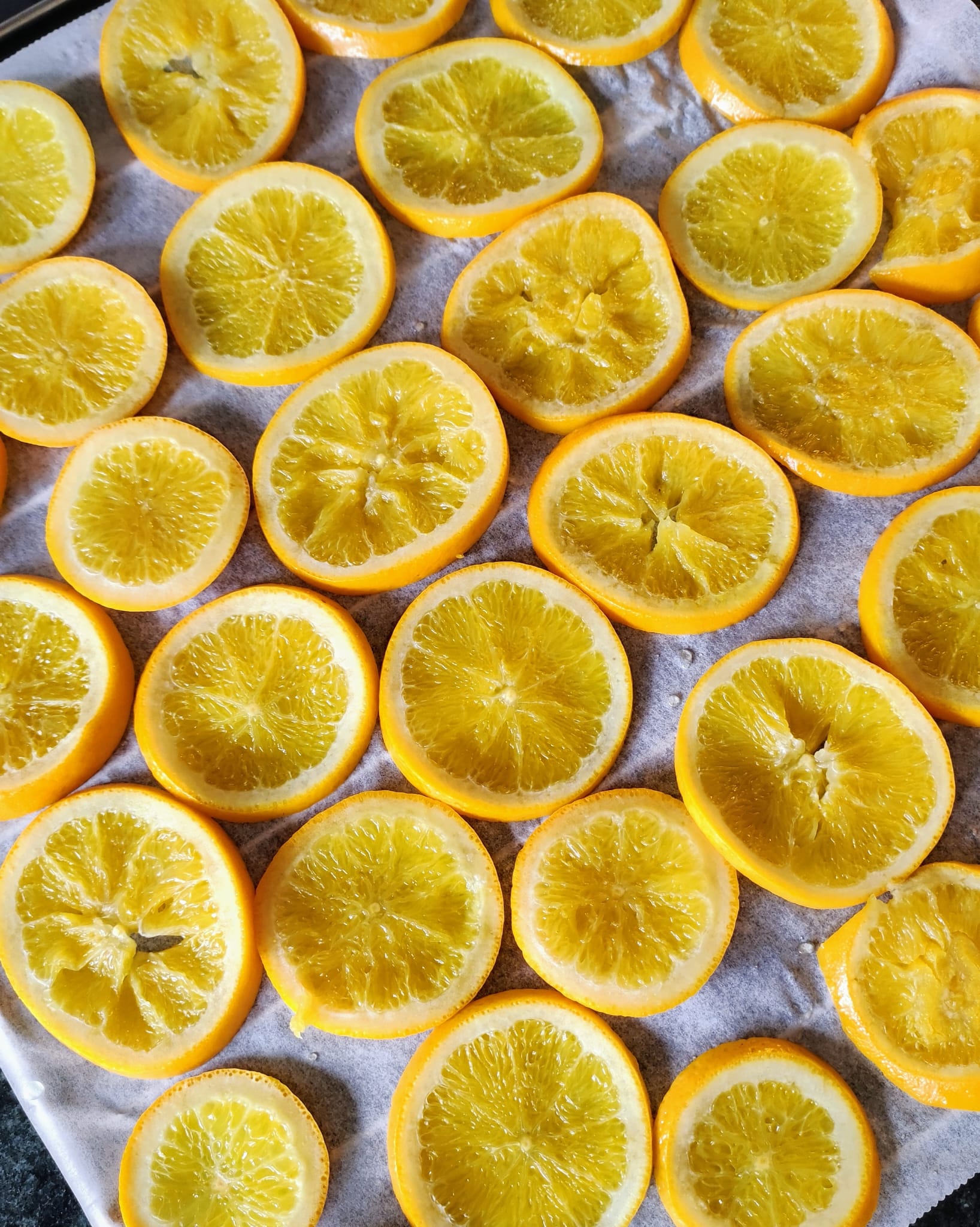 Extiende todas las rodajas en una rejilla del horno (con papel vegetal) y hornea a 180ºC, otros 15 minutos, hasta que se sequen un poco. Retira del horno.