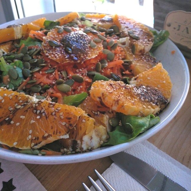 Ensalada con todo el sabor de la zanahoria y la naranja, en contraste con las pipas de calabaza.