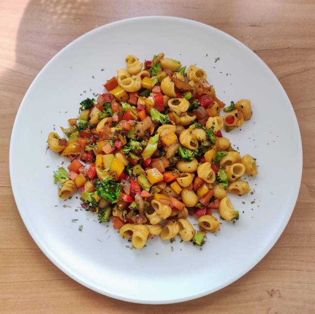 Macarrones veganos con soja texturizada, sin alimentos de origen animal