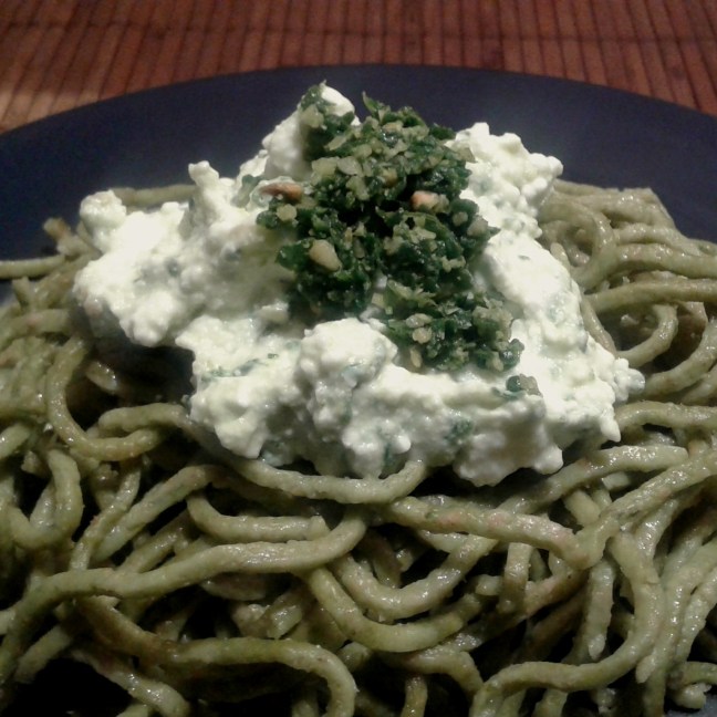 Pasta fresca casera, acompañada con un pesto de avellana que le da un sabor único